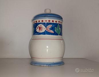 Elegante contenitore per caffè in ceramica, perfetto per la tua cucina. Presenta una vivace decorazione a tema marino con pesci e piante acquatiche.