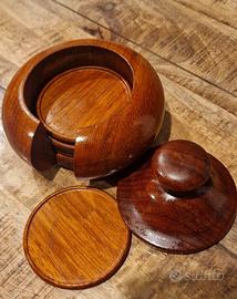 Vendo set di sottobicchieri in legno con contenitore e coperchio, molto appropriato in un contesto di montagna o in un arredamento in arte povera.