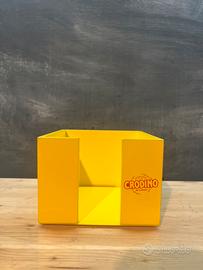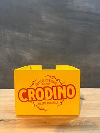 Contenitore CRODINO originale, modello da banco da bar/pub, in plastica rigida gialla con logo rosso.