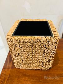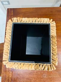 Contenitore decorativo in fibra naturale intrecciata con coperchio nero Utilizzabile come scatola portaoggetti in stile rustico Spedizione con BTR
