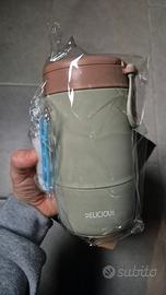 Tazza per Cereali, tazza per yogurt, con cucchiaio, contenitore per alimenti da 300+430 ml per muesli, yogurt, pappe, porridge, avena notturna, gelati e zuppe (verde)