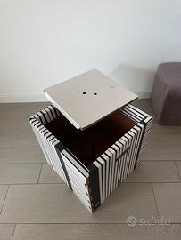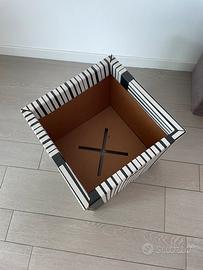 Contenitore di cartone 41 x 41 x 41 cm. Originariamente era un pouff Rippotai con coperchio e supporto interno; ora resta solo la scatola interna e il coperchio (il corperchio ha delle macchie, la scatola è in buone condizioni). Utile come porta oggetti. Consegno solo a mano.