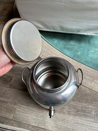 Contenitore in acciaio inox 18/10 con rubinetto, perfetto per vino, olio o altre bevande. Capacità: 5 litri • Design vintage molto bello anche come arredo • Rubinetto funzionante per versare facilmente • Con coperchio e manici laterali • Base con piedini stabile In ottime condizioni Ideale per casa, taverna o eventi 🍷
