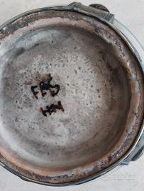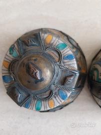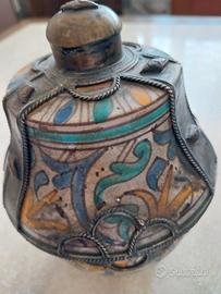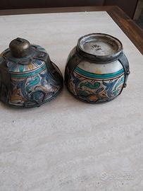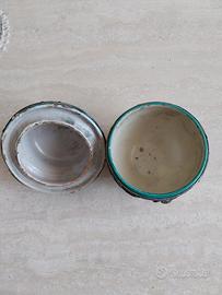 Contenitore in ceramica decorata e metallo