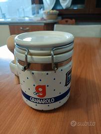 Vendo contenitore per zucchero NUOVO in ceramica con coperchio ermetico con cucchiaino in legno e disposto anche a spedire