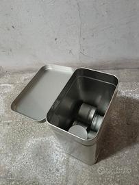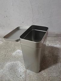 Contenitore multiuso in metallo (banda stagnata) color argento satinato.