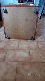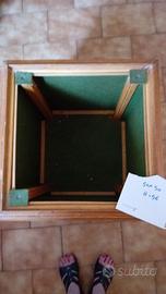 Contenitore in legno foderato con vellutino verde,con 4 rotelle. Misure 50x50 h. 56