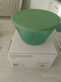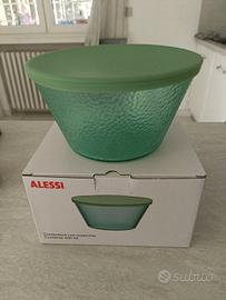 Contenitore in vetro colore verde marca Alessi in vetro con coperchio in silicone misura diametro 18,8 cm NUOVO ancora inscatolato
