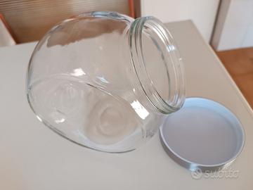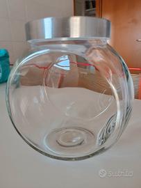 Contenitore in vetro x alimenti vari ( biscotti, caramelle, legumi..) con coperchio che si avvita. si può posizionare in due posizioni. Marca Rocco Bormioli.