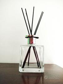 Elegante contenitore in vetro trasparente diffusore fragranze per ambienti. Nuovo - Design moderno e minimalista. - Tappo argentato - Include 6 stecche diffusori in midollino nere nuove. - Liquido profumo non incluso Scambio a mano a Roma o spedizione con Tuttosubito profumatore profumo bastoncini legno oli essenziali millefiori essenze