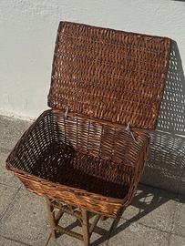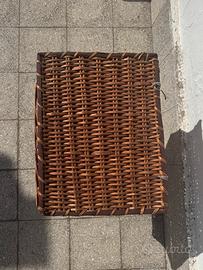 Contenitore in vimini intrecciato, ampio e resistente. Dimensioni: 45 × 35 cm, altezza 19 cm.