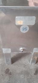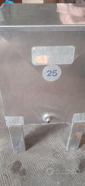 Contenitore rettangolare inox da 25 litri,con piedi e predisposizione per rubinetto,più tappa bottiglia a colonna