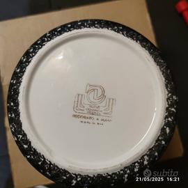 Contenitore nero maculato nero e bianco. Come si può vedere dalle foto all'interno é sbeccato ma in buone condizioni per il resto.