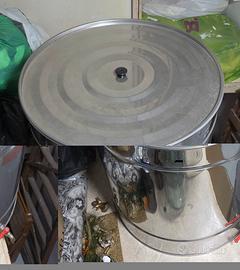 Contenitore olio da 200 litri in acciaio inox 18/10 con coperchio e rubinetto. vendo causa inutilizzo, usato solo un anno. non spedisco