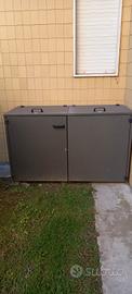 contenitore per bidoni rifiuti da esterno in ferro con apertura sul davanti e sopra con possibilità di chiusura con chiave