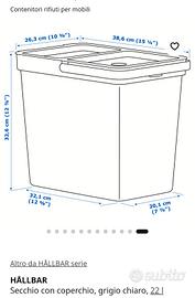 Contenitore per rifiuti ikea modello Hallbar Capacità 22 litri Misure 33x26x39