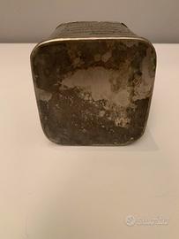 Meraviglioso contenitore English Breakfast Tea. Vintage anni’70/80. Placcato argento. Misura 10x10x12cm.circa. Usato e vissuto come da foto ma dalla patina favolosa( non effettuata nessuna pulizia per scelta). Articolo splendido da vetrina per amanti e collezionisti del genere.