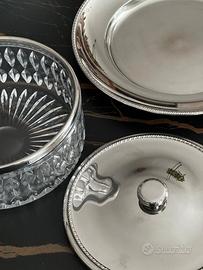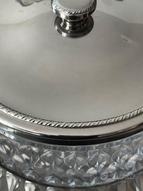 Contenitore porta biscotti in vetro e coperchio con vassoio anni 70 come nuovo Contenitore vetro 19 cm diametro Vassoio in acciaio 30 cm diametro