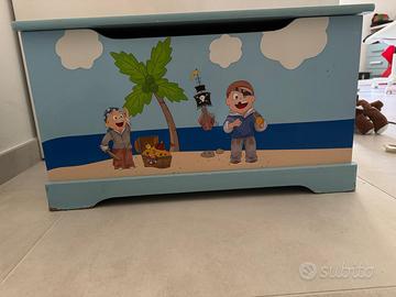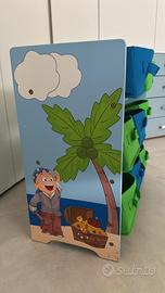 Contenitore, porta giocattoli, appendi abiti e cornici per cameretta bambini in buone condizioni.