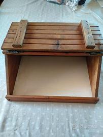 Contenitore portapane in legno color noce. Dimensioni largh. 39,5 x alt. 18,5 x prof. 28,5.