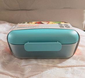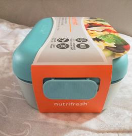 Vendo *lunch box Nutrifresh™* nuovo, mai usato, ancora con etichetta originale. *Caratteristiche:* - Capacità: 800 ml - Dimensioni: 20.4 x 14.4 x 7.7 cm - Colore: turchese - *Cool Touch* – mantiene l’esterno freddo anche con cibo caldo - *Valvola per vapore* – adatto al microonde - *Coperchio a chiusura ermetica* con clip di sicurezza - *A prova di perdite* Perfetto per portare pranzo o snack a scuola, lavoro o in viaggio.