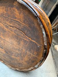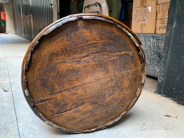 Contenitore Chakki indiano d'epoca, tradizionalemente usato per la macina del grano, può essere un complemento d'arredo rustico/coloniale. Presenta manici intagliati e una struttura robusta, con rinforzi in legno.
