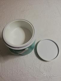 Contenitore termico per il trasporto e la conservazione degli alimenti della Interplast. Coperchio avvitabile. Pratica maniglia per il trasporto. All'interno c'è anche una vaschetta per alimenti. Mai utilizzato. Made in Italy. Misure: altezza 25 cm, diametro 17.5 cm.