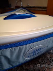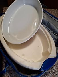 Contenitore termico con pirofila in ceramica da forno sia tradizionale che microonde e con borsa per il trasporto. Conserva il cibo sia caldo che freddo senza alterazione di sapore o di qualità. Pirofila ovale cm 34x24 ,contenitore termico con coperchio cm 44x28. Made in Italy. Mai usato, nella sua confezione originale.