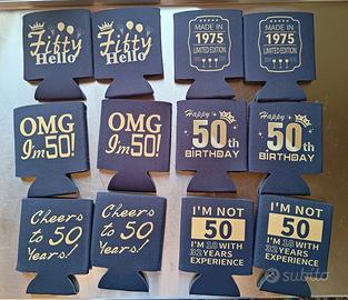 24 guaine termiche per lattine, 6 fantasie , 4 pezzi per fantasia, ideali per i festeggiamenti dei 50 anni dei nati nel 1975