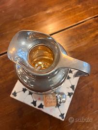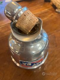 - Nuovo Raccolto", si tratta di un recipiente promozionale o da servizio usato per servire tè freddo (probabilmente in bar o locali), realizzato in metallo cromato con beccuccio per versare.