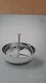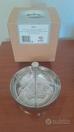 Contenitore sferico Alessi a tre scomparti porta bustine the o zucchero in acciaio inossidabile 18/10 disegnato da Pierre Charpin. Dimensione approssimativa cm 15 per 13. Scatola imballaggio originale