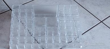 vendo contenitore in plastica resistente 30×19 con multi separatori adatto a sistemare rossetti gloss rimmel matite e pennelli e tre più grandi per creme skincare fondotinta