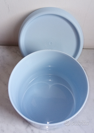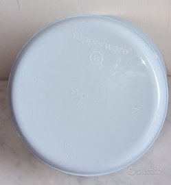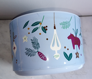 Contenitore Tupperware rotondo circonferenza cm 42, altezza 9, 940ml. In regalo decorazione natalizia da appendere, cm 10×9, credo compensato.