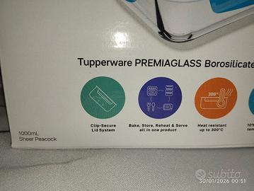 contenitore Tupperware 1 litro nuovo base in vetro con sigillo si può usare in microonde (no sigilli)