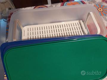 CONTENITORE TUPPERWARE CON DUE COPERCHI E FONDO SALVA FRESCHEZZA PER DIVERSI UTILIZZI.