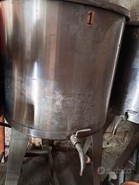 2 contenitori acciaio con ruote e 2 rubinetti e coperchio 500 litri