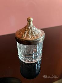 Vendo tris di piccoli contenitori etnici in vetro e metallo.