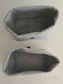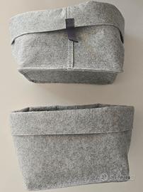 Vendo 2 contenitori IKEA in feltro grigio, modello NORDRANA (fuori produzione), ideali per organizzare piccoli oggetti in bagno, camera, ufficio o armadio.