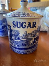 Tre contenitori in porcellana Coffee Tea Sugar. Piccola sbeccatura in un coperchio (quasi invisibile). A Treviso