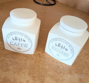 Contenitori conserve zucchero, sale, caffè. Quello del sale è senza tappo come in foto. Sono in perfette condizioni a parte il tappo mancante che si è rotto accidentalmente...