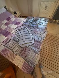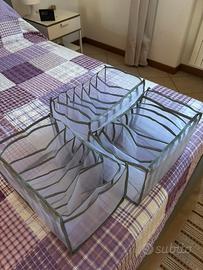 Vendo contenitori per armadio in materiale tipo retina robusta, per poter riporre maglie o t-shirt o anche pantaloni piegati, leggeri e maneggevoli , 7 pezzi da 9 scomparti e 3 pezzi da 7 scomparti, tutti misurano 37x25x20. Vendo anche a gruppi di 2-3 pezzi