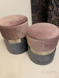 Contenitori pouf da arredamento in velluto con dimensioni di 34x40H (grande) e 30x36H (piccolo) ideali per ambienti soft come soggiorno o camera da letto