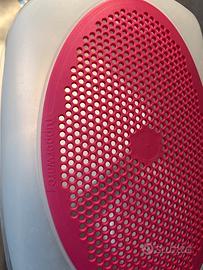 Contenitori tupperware, due dimensioni, per contenere alimenti organizzati nel frigorifero.