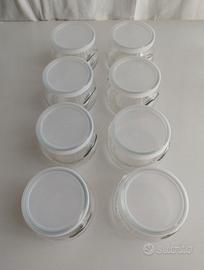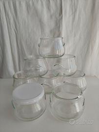 N. 8 contenitori in vetro (con manici abbozzati tipo orcio) con coperchio in plastica, ottime per preparazioni monodose o porzionate (dolci, macedonia, gelato). Condizioni e misure come da foto. #Contenitore #ciotole #vasetti #vetro #monodose #porzioni