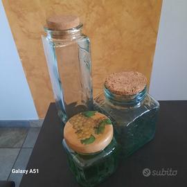 vendo n.3 contenitori in vetro per pasta farina etc.....2 con lavorazioni in rilievo e 1 vetro liscio colore verde