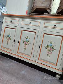 mobile panna con disegni e riferimenti arancio lunghezza 1,49 cm altezza 97,5 cm profondità 47,5 cm