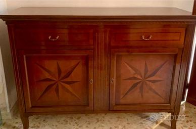 Contro Mobile e noce con due ante intarsiate e due cassetti. Libreria in noce con cinque ripiani e due cassetti. Usato come nuovo, perché componenti di arredo di una casa vacanza.