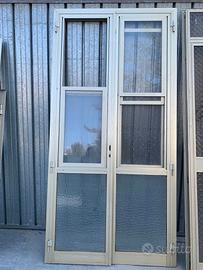 VENDIAMO CONTROPORTA, A DUE ANTE, COLORE BRONZO CHIARO. L'INFISSO E' TAMPONATO CON FINESTRE CON VETRO DA 4 MM + ZANZARIERA modello SALI/SCENDI, CON PROFILO IN GIUNTO APERTO, CON APERTURA ESTERNA, completa di telaio.
