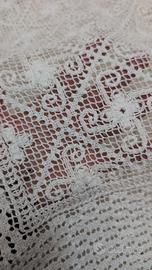 bellissimo copriletto filet molto particolare la lavorazione a mano è stata eseguito il completo con la tenda che misura 2 metri per 2 m. presenta una striscia di filet del solito ricamo nel centro mistolino grosso. il copriletto è tutto fatto interamente a filet con un disegno