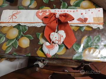 coppia tende finestra/portafinestra come foto + copri forno uguale delle tende !! alle tende c'è compreso anche il ferma tenda abbinato! Nessun difetto!
